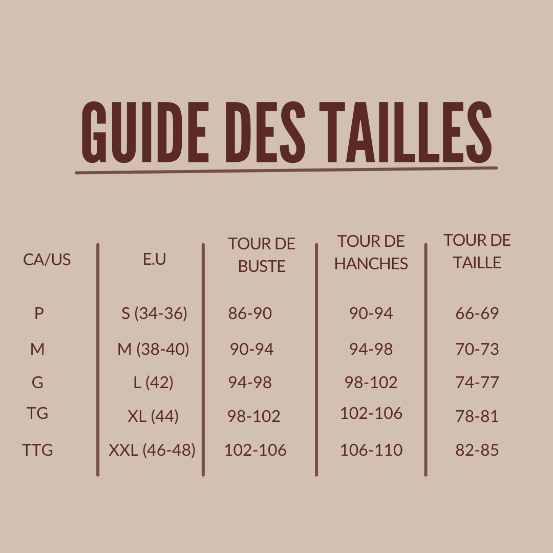 Référez vous à notre guide pour choisir la taille qui vous convient.